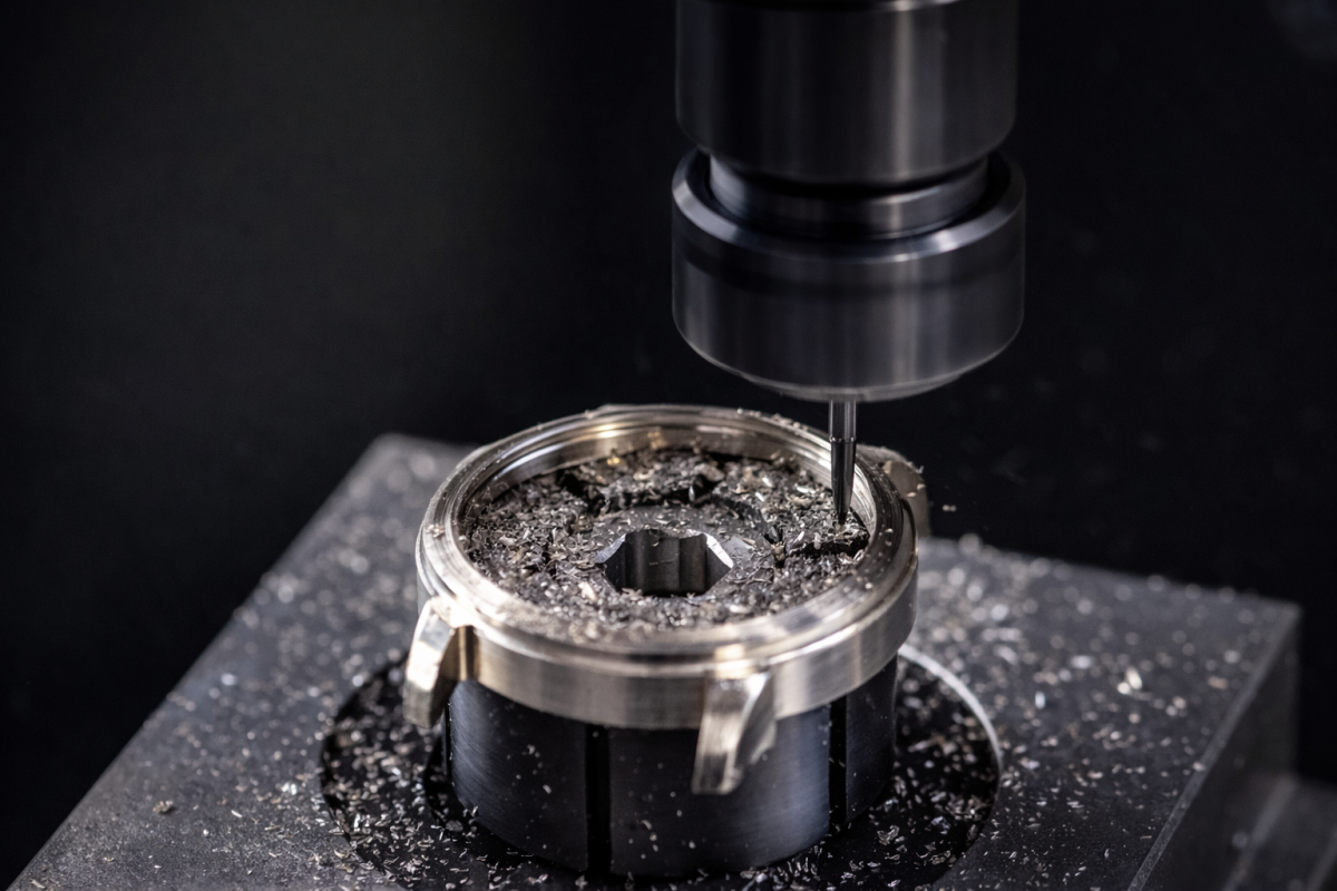 MBJE TECH SA intègre l’usinage horloger de haute précision, du fraisage au tournage, jusqu’aux finitions horlogères les plus exigeantes, incluant le polissage, la décoration des mouvements, les terminaisons et le roulage.